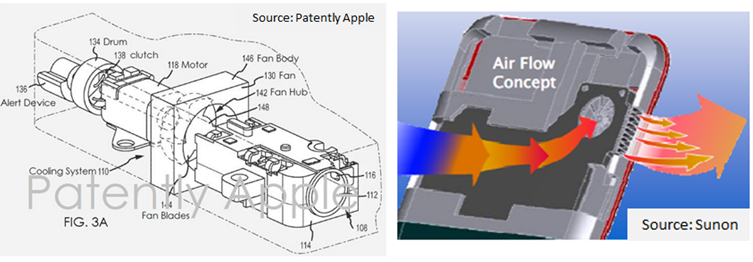 In 2012, Apple submitted a patent application for a device that uses the phone’s vibrator motor to power a fan. While it’s yet to be implemented, the company is clearly devoting resources to tackling this problem. Additionally, Sunon is marketing a 3mm thick fan which it claims is ideal for smartphones. Given the early trend towards waterproofing hand held devices, further reducing air-flow, and the inherent problems with active cooling devices, I’m still a bit skeptical about this solution.