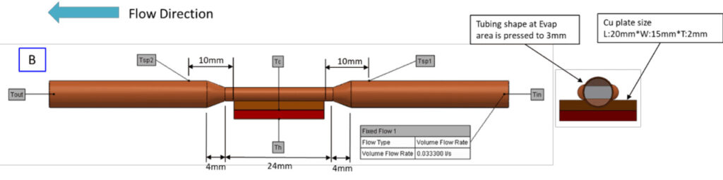 Figure 1 illustrated common heat pipe mounting options. Mounting options A-D use a copper base plate to which the heat source is attached. For options E-G, the heat source directly contacts the heat pipe. In the following test setups, red arrows represent the location of the heat source/input.